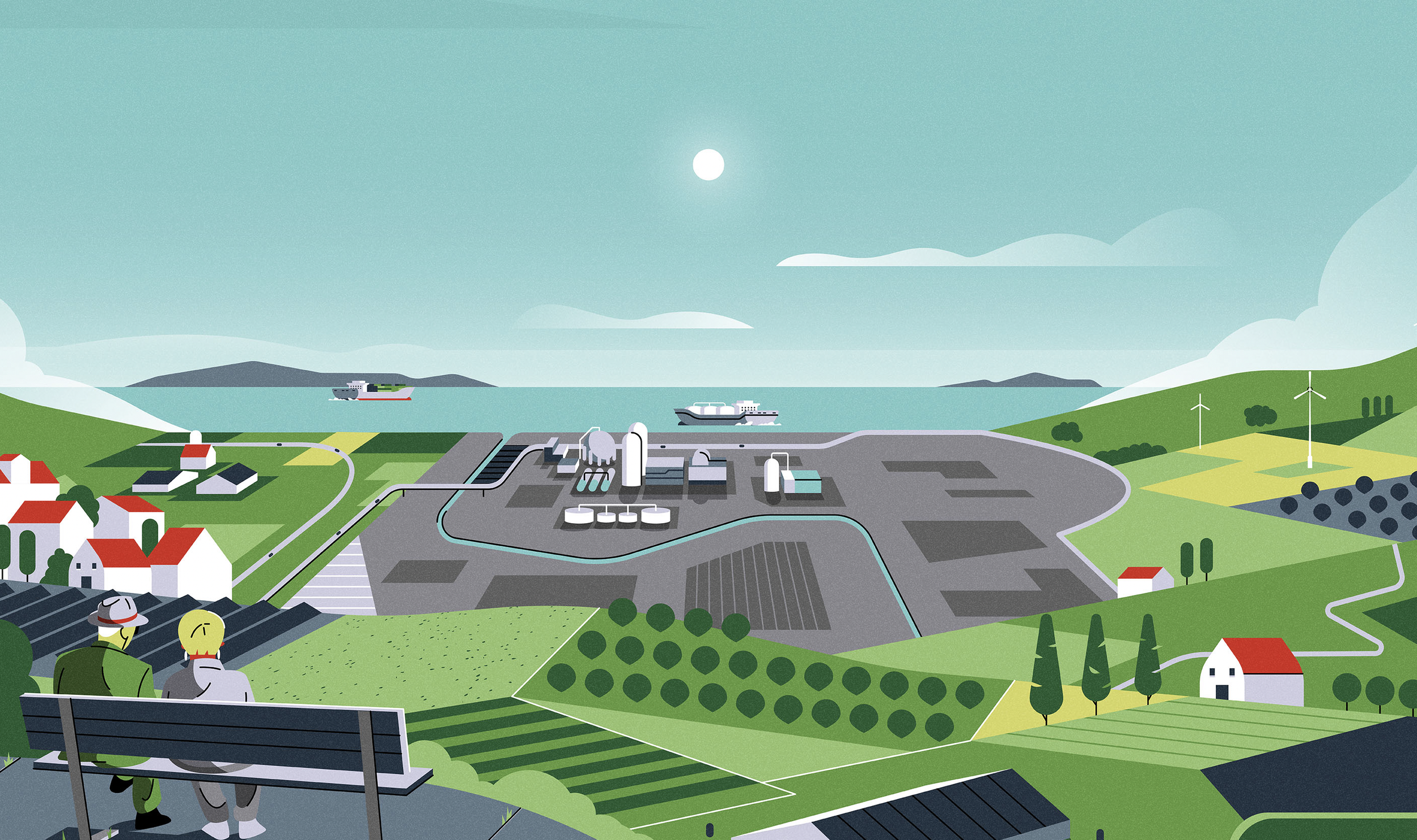I was asked to produce a series of illustrations to accompany a mini story and quiz for The New York Times. The project showcases Cepsa’s ambitious journey into renewables and decarbonisation efforts through green hydrogen supply. The article highlights why Spain is the ideal location to produce green hydrogen.