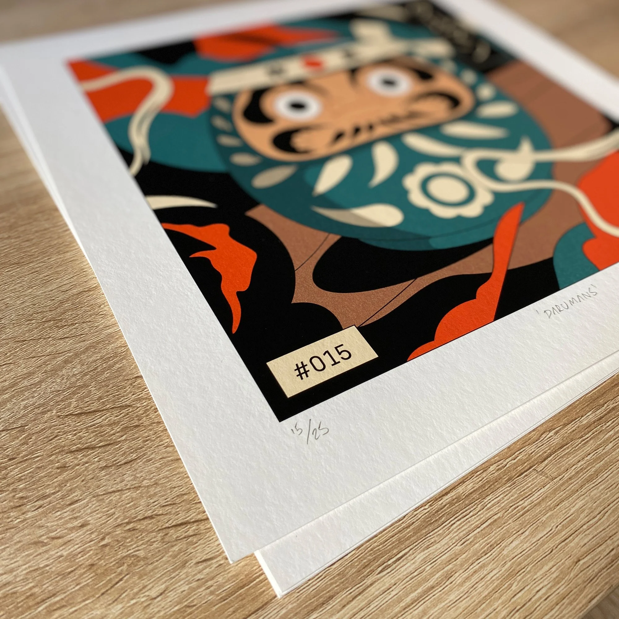 When you purchase a Daruman you will receive a pack. Inside, you'll find your print along with a matching postcard featuring the same Daruman.