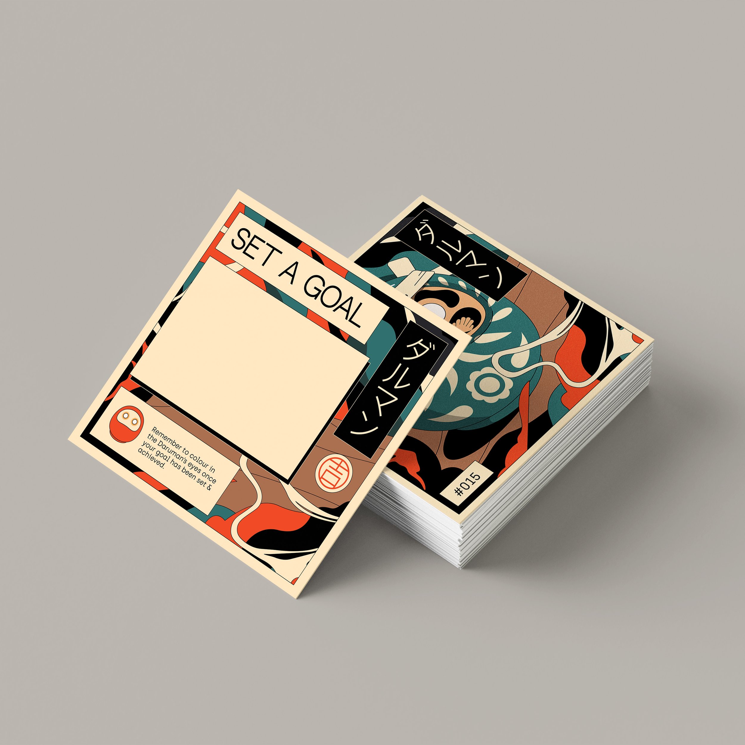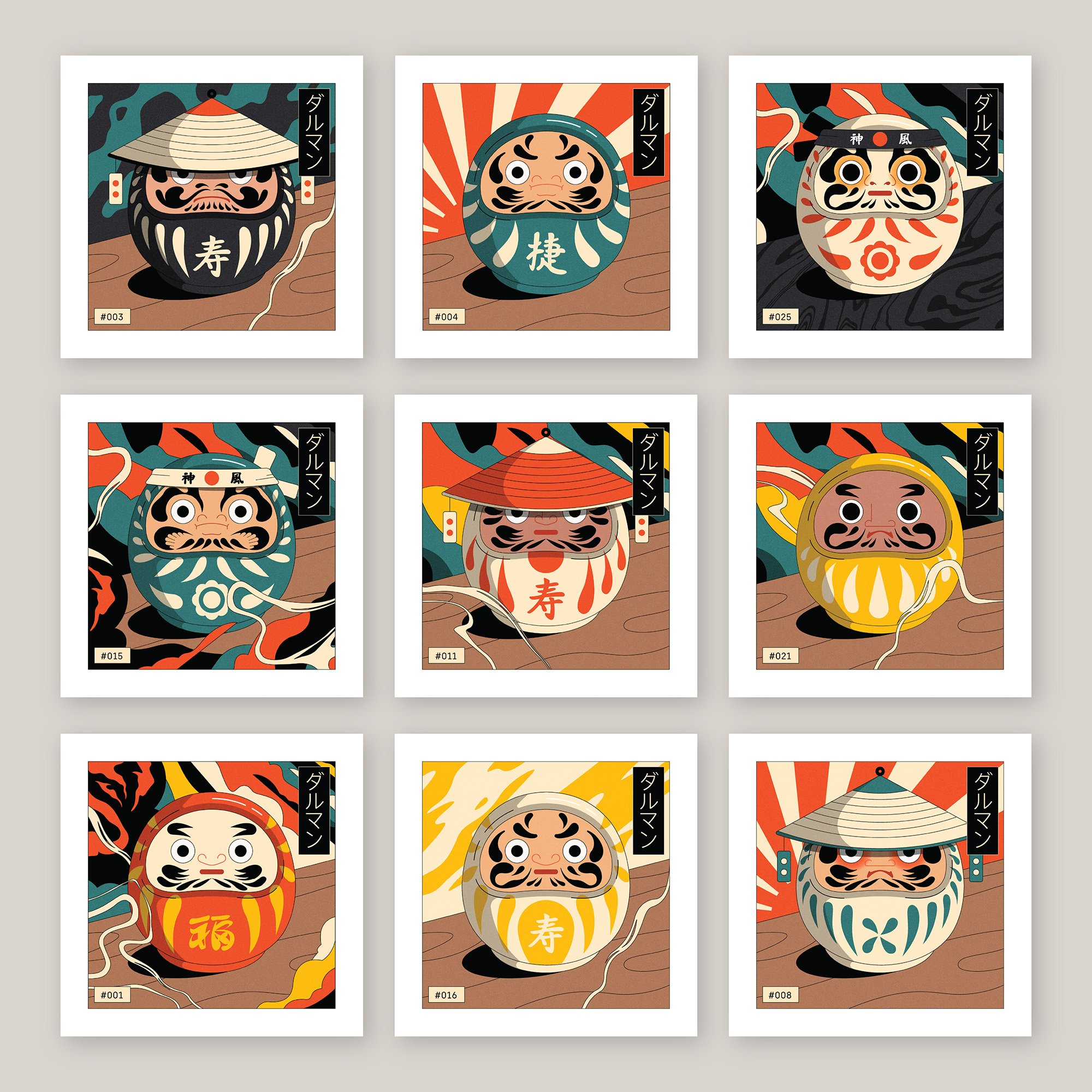 Inspired by the ancient Japanese tradition of Daruma Dolls, Darumans is a project designed to help you set and achieve your yearly goals. Serving as a personal reminder to stay motivated and accountable as you work toward your goal, your Daruman print is one of 25 designs and is selected at random, adding a touch of fate to your journey.