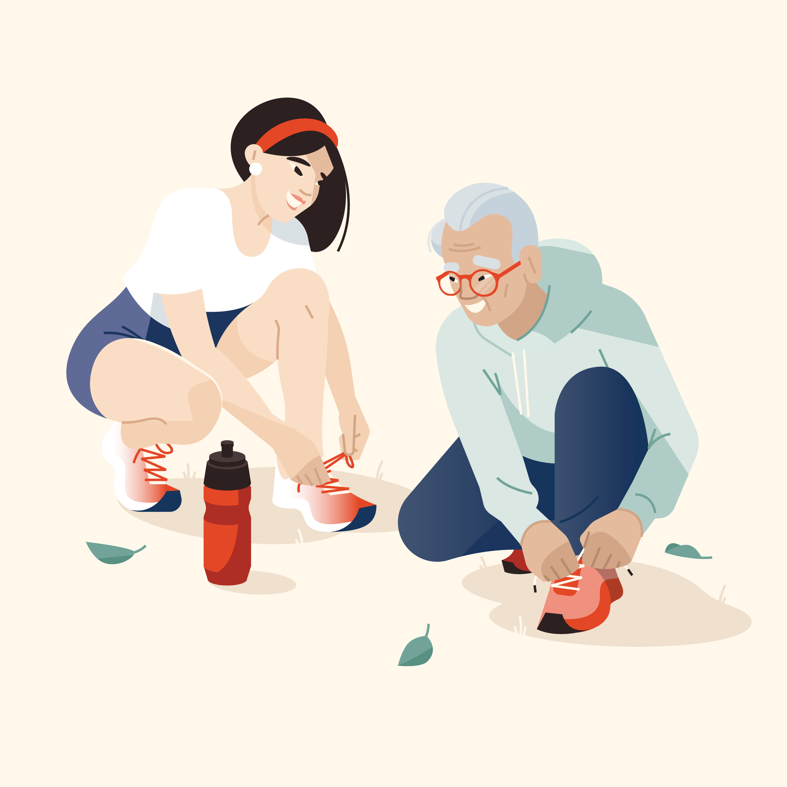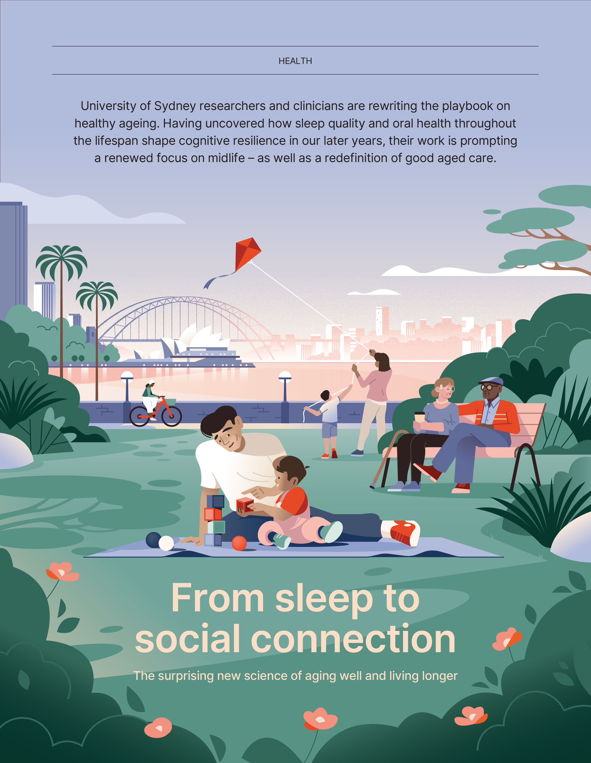 Editorial for Sydney Alumni MagazineA hero and some spot illustrations for a nice article on aging well and living longer. I really enjoyed experimenting with character design on this job.