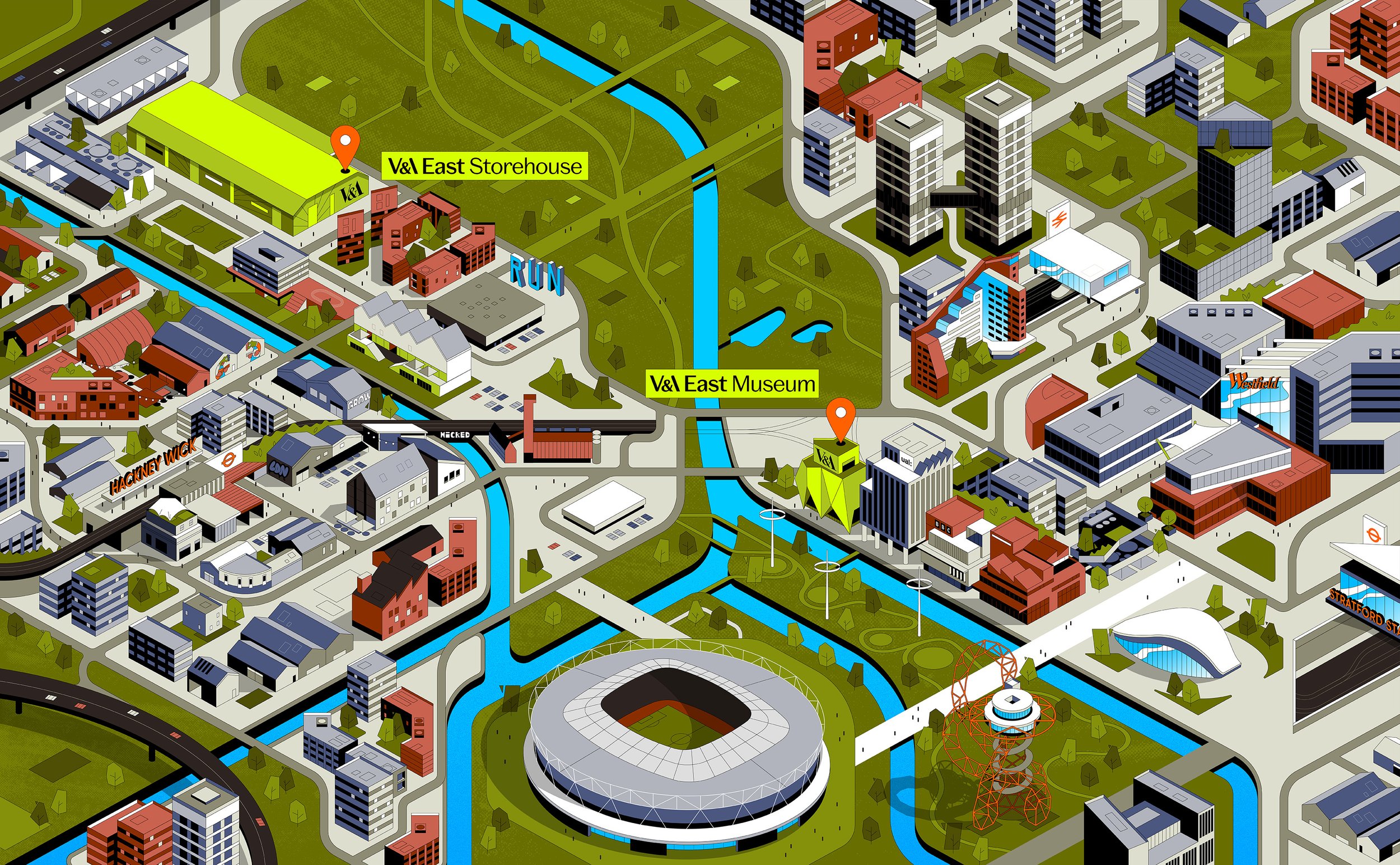 To accompany the launch of the new East Museum, I was commissioned to create a detailed map of the area, highlighting both the Storehouse and the museum.
